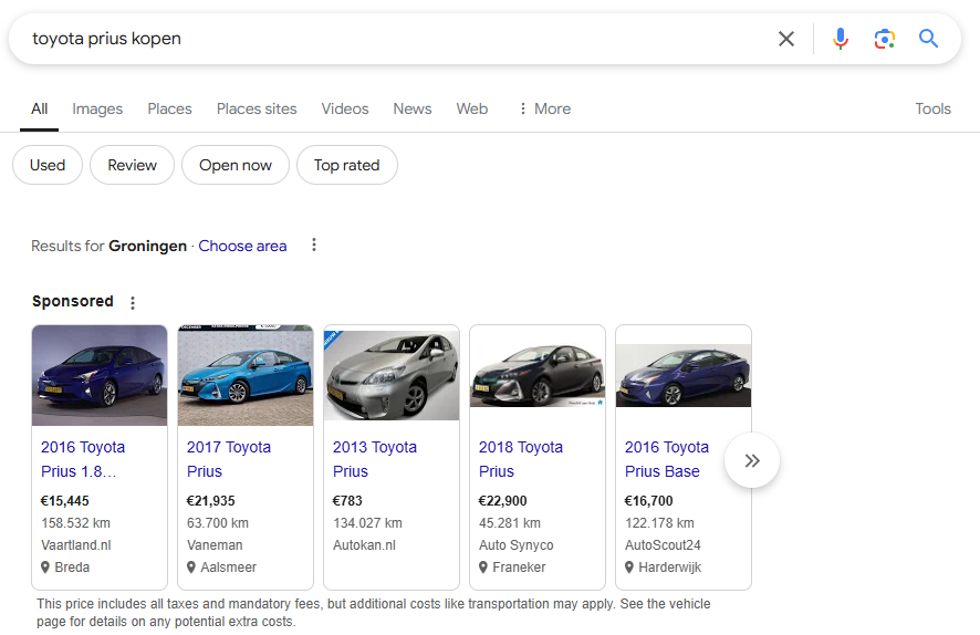 Wanneer je ook wilt adverteren binnen Google met jouw autovoertuigen, neem contact met ons op, wij kunnen je mee laten doen aan de beta.